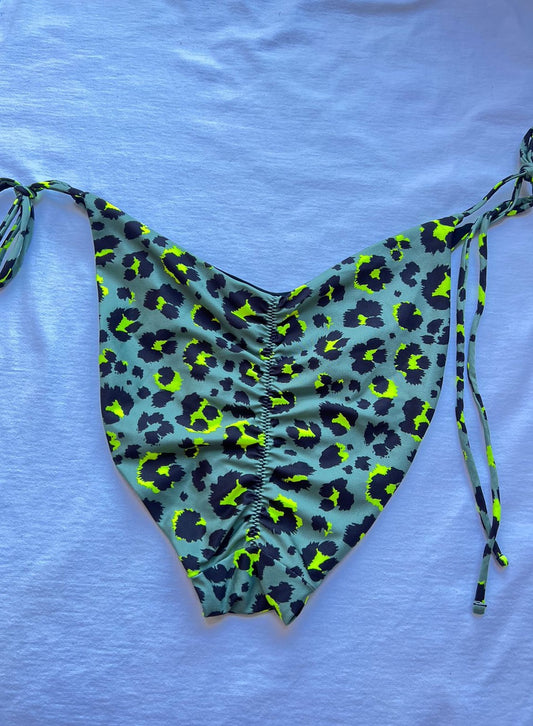STRAPS RUCHED HIGH THONG GREEN LEPARD